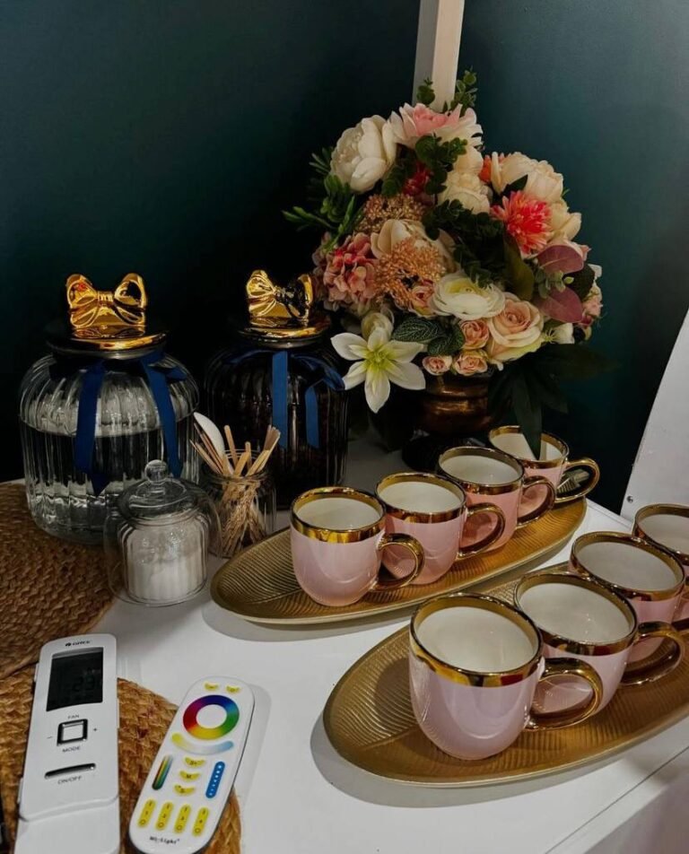 • serviravimo reikmenys (tortinės, peilis, žvakučių uždegiklis, vaza)